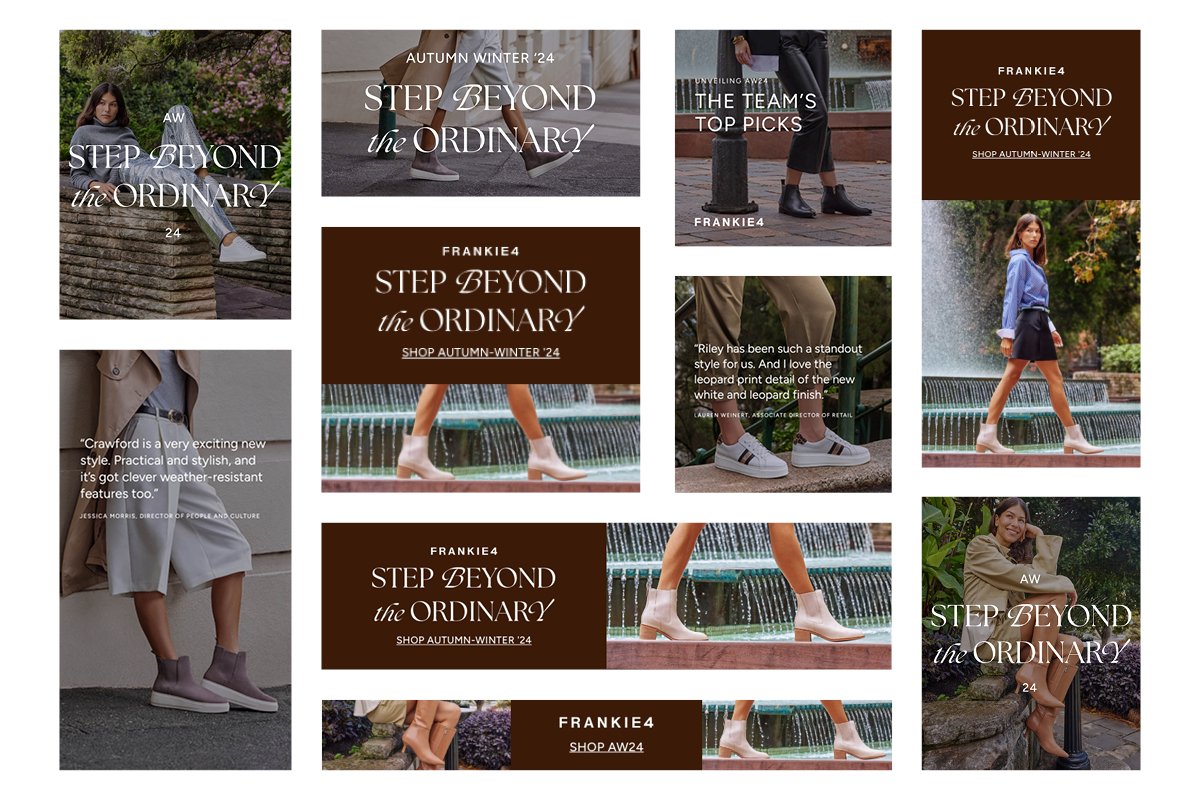 FRANKIE4 launches a seasonal product line twice yearly and designs a unique campaign for the launch each time. For the Autumn Winter product launch of 2024, I partnered with our Senior Graphic Designer and Art Director to come up with a campaign concept, which included a custom lockup and color pallet.